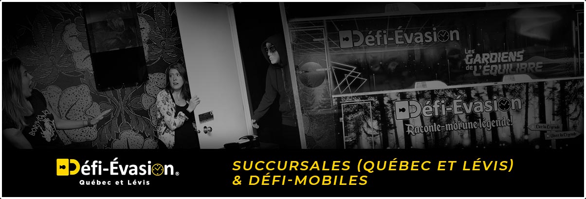 Défi-Évasion vous offre d’autres défis que ceux connus en succursales. Parmi ceux-ci, vous retrouverez entre autres nos Défis-Mobiles, nos jeux d’énigmes en 100% en ligne, des stations énigmatiques, ou encore la possibilité de créer un produit sur mesure personnalisé à vos couleurs. Nos défis sont donc l’occasion de mobiliser votre équipe de travail avec une activité Team Building hors de l’ordinaire et ainsi élever votre équipe à un niveau supérieur!