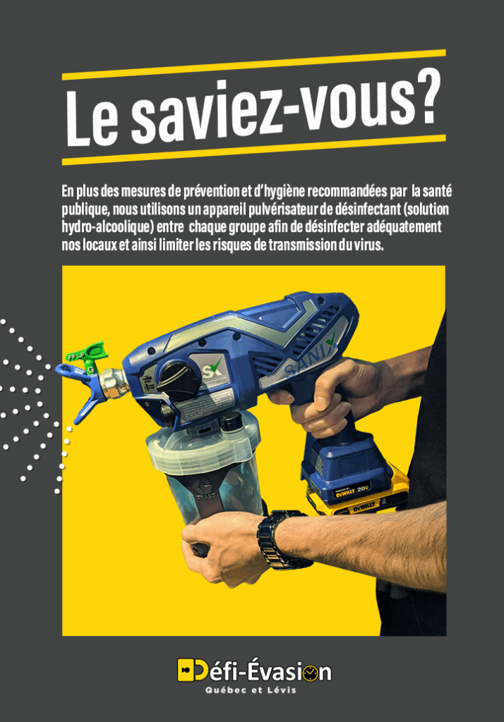 Dès le 1er septembre 2021, tel qu’annoncé par les autorités gouvernementales, Défi-Évasion devra exiger que chaque participant à un jeu d’évasion soit adéquatement protégé contre la COVID-19.